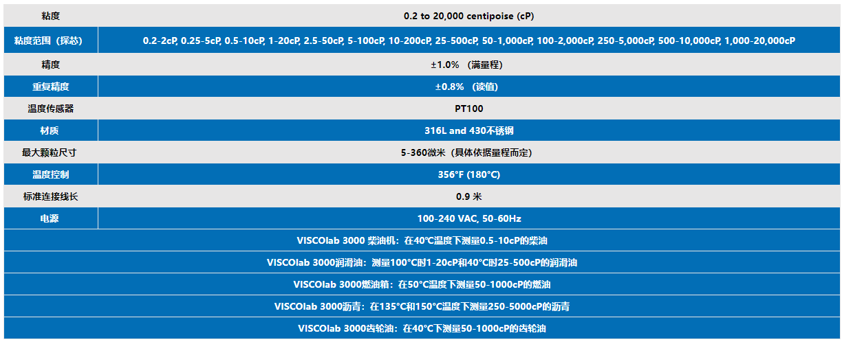 VISCOlab 3000粘度計規格參數: